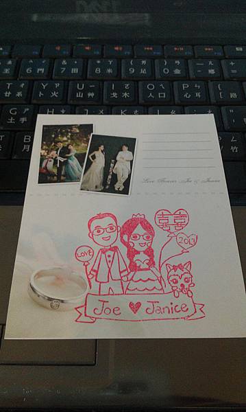 印章的size是5cm*5cm,這個大小做婚禮章剛剛好,橡皮章非常好蓋,簡單按壓幾下就能把圖形完整轉印到明信片上,很滿意這樣的成果。